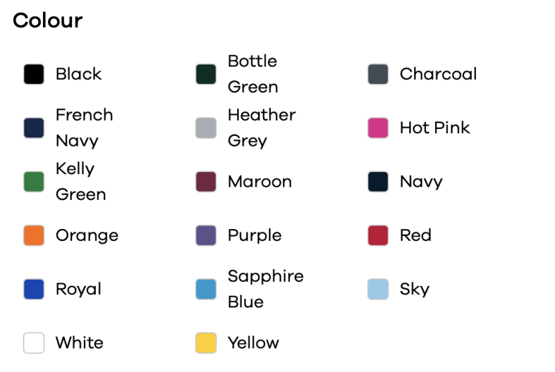 Please Confirm Your Choice Of Colour/s And Size/s: *